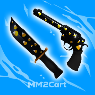 The Candy Corn Set consists of Candy Corn, a common knife, and Candy Corn Gun, a common gun. Both were originally obtainable during the 2020 Halloween Event by purchasing Tier 2 in the Main Event. Since the event has ended, they are now only obtainable through trading.